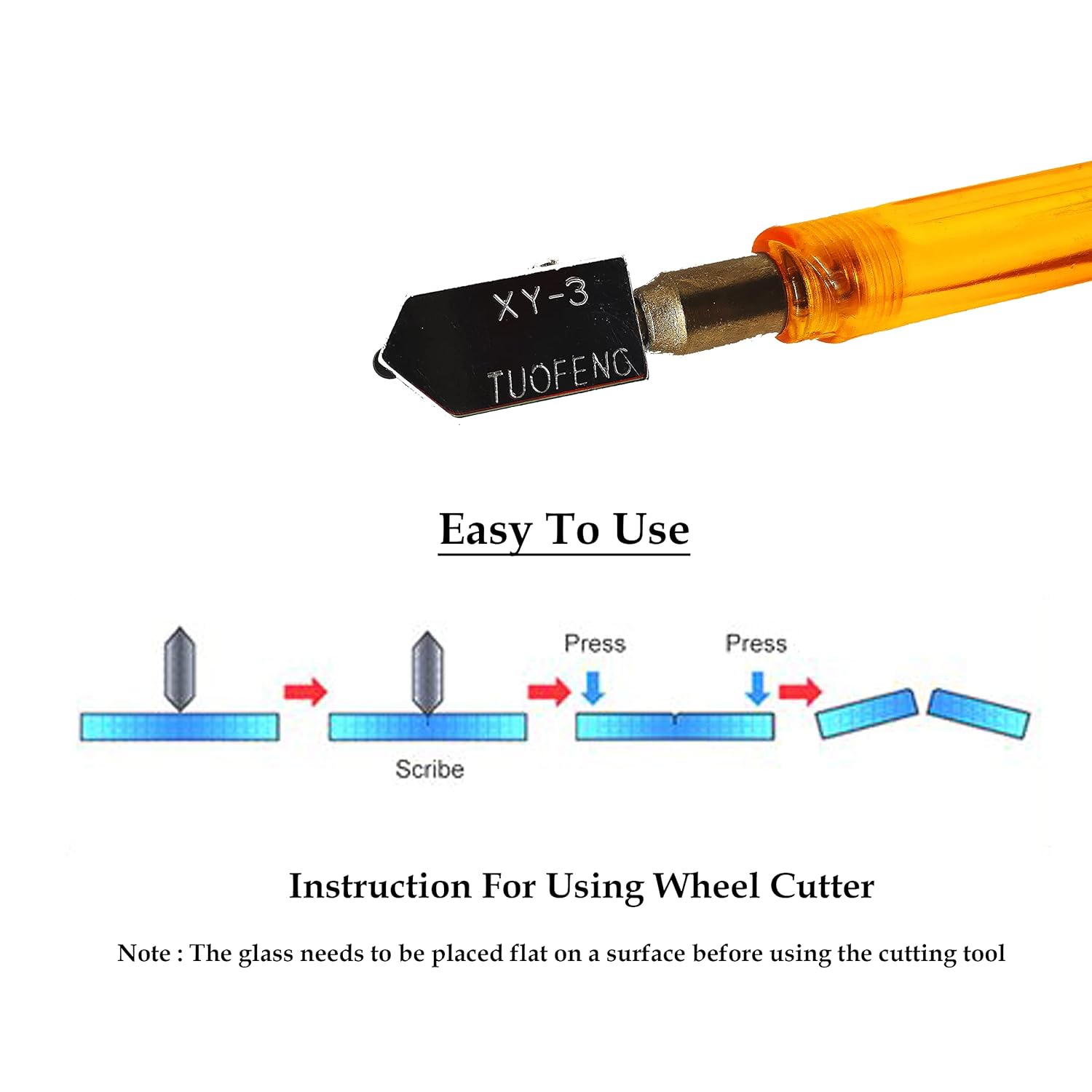 Glass cutter toufeng is a standard glass cutter which can cut glass of thickness up to 12 mm. The narrow tipped high-pressure tungsten carbide wheel ensures deep cut over the score, unlike other cutters. New improved Design help to hold firmly for cutting. This tool is used to make a shallow score in one of the surfaces of the glass that is to be broken into two pieces. This new generation cutter has the facility to fill oil in the body and which helps the glazier to score in minimum effort. The free flow of oil makes the cutter move easily.